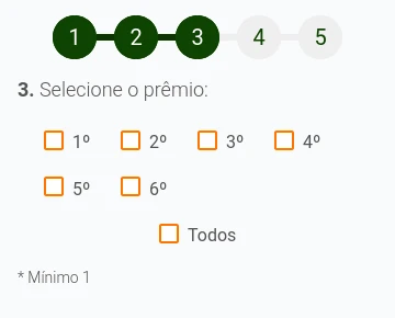 Você escolhe um número com 4 algarismos, de 0000 a 9999 no 1º, 2º, 3º, 4º, 5º e 6º prêmio, podendo selecionar todos, somente um ou um intervalo entre eles (potencial de retorno aumenta ou diminui de acordo com a quantidade selecionada).